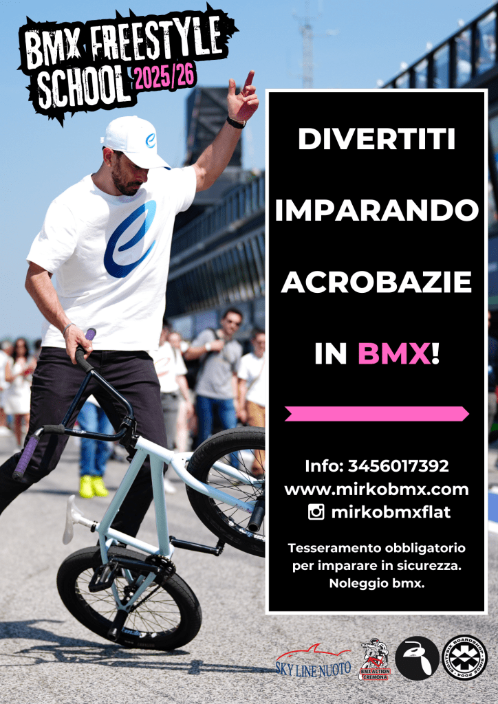Con quasi 20 anni di esperienza nel settore, i nostri corsi sono pensati per accompagnare passo dopo passo chiunque voglia scoprire il mondo della BMX, dai principianti agli avanzatiCorsi Bmx Freestyle 25-2026.